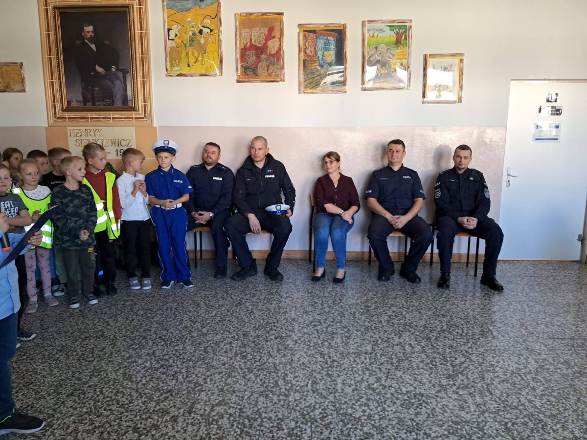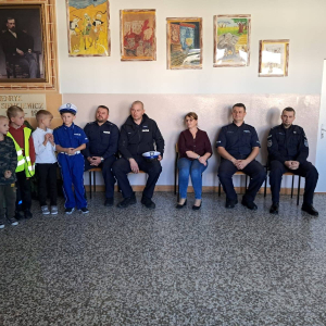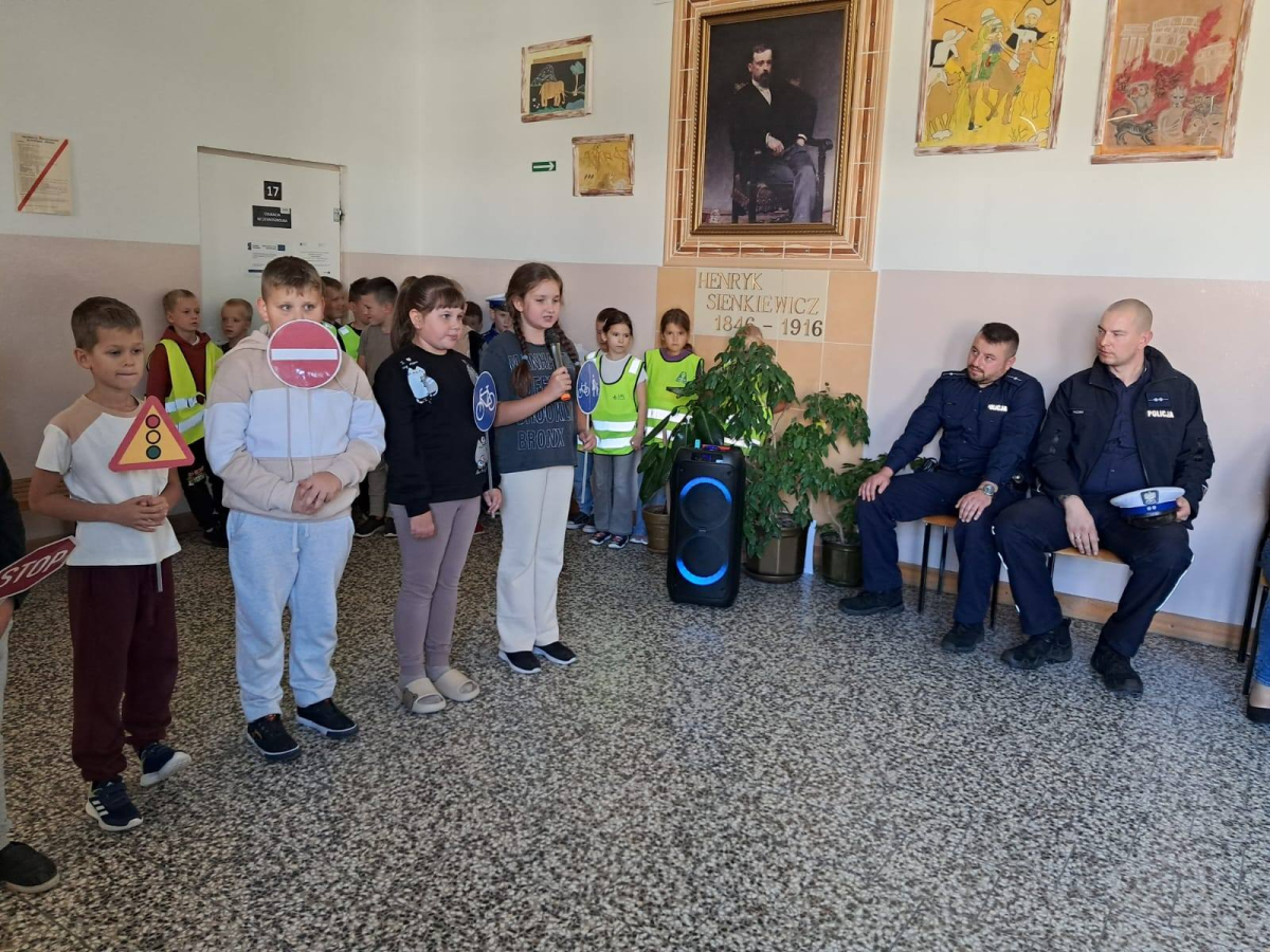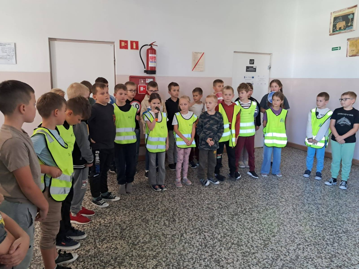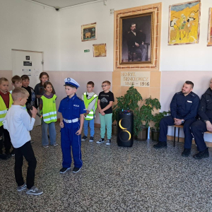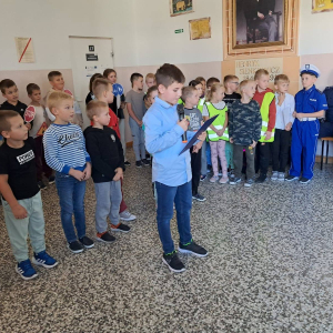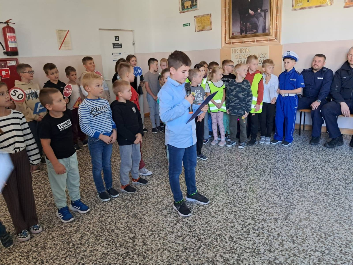 2 października 2025 r. w naszej szkole odbył się apel pod hasłem „Bezpieczna droga do szkoły”. Uczniowie klas I–III zaprezentowali część artystyczną, w której przypomnieli zasady bezpiecznego poruszania się po drogach. Następnie policjanci z Komendy Powiatowej Policji w Rykach przeprowadzili interesującą prelekcję, podczas której zwrócili uwagę na podstawowe zasady bezpieczeństwa na drodze, omówili sytuacje mogące stwarzać zagrożenie oraz podpowiedzieli, jak im zapobiegać. Poruszyli również temat odpowiedzialnego korzystania z Internetu i przypomnieli, jak ważne jest noszenie elementów odblaskowych, które zwiększają widoczność pieszych. Na zakończenie przedszkolaki otrzymały odblaskowe opaski, które będą im towarzyszyć w drodze i zwiększą ich bezpieczeństwo.