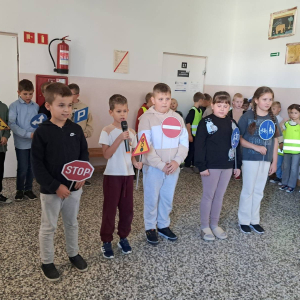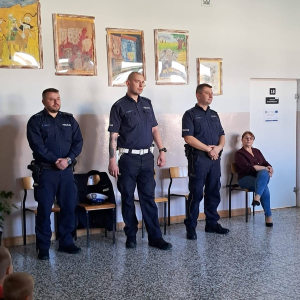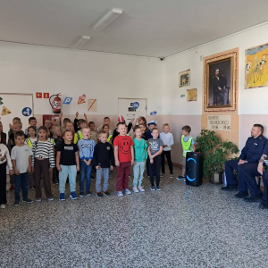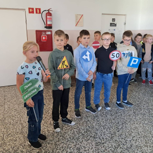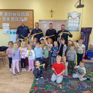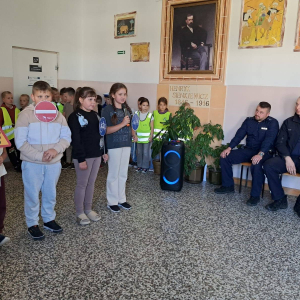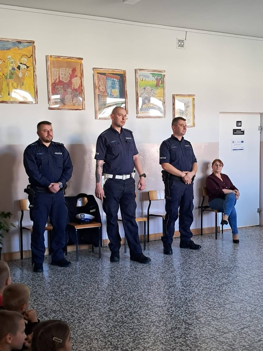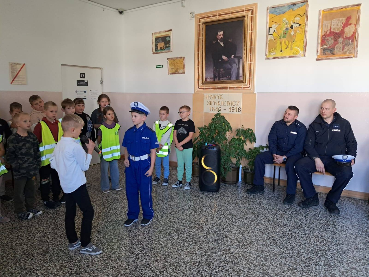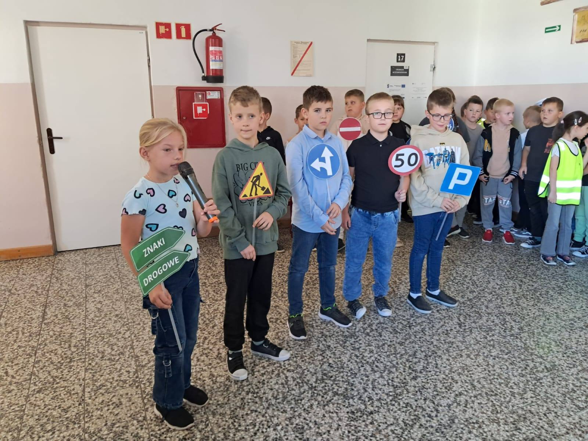 2 października 2025 r. w naszej szkole odbył się apel pod hasłem „Bezpieczna droga do szkoły”. Uczniowie klas I–III zaprezentowali część artystyczną, w której przypomnieli zasady bezpiecznego poruszania się po drogach. Następnie policjanci z Komendy Powiatowej Policji w Rykach przeprowadzili interesującą prelekcję, podczas której zwrócili uwagę na podstawowe zasady bezpieczeństwa na drodze, omówili sytuacje mogące stwarzać zagrożenie oraz podpowiedzieli, jak im zapobiegać. Poruszyli również temat odpowiedzialnego korzystania z Internetu i przypomnieli, jak ważne jest noszenie elementów odblaskowych, które zwiększają widoczność pieszych. Na zakończenie przedszkolaki otrzymały odblaskowe opaski, które będą im towarzyszyć w drodze i zwiększą ich bezpieczeństwo.