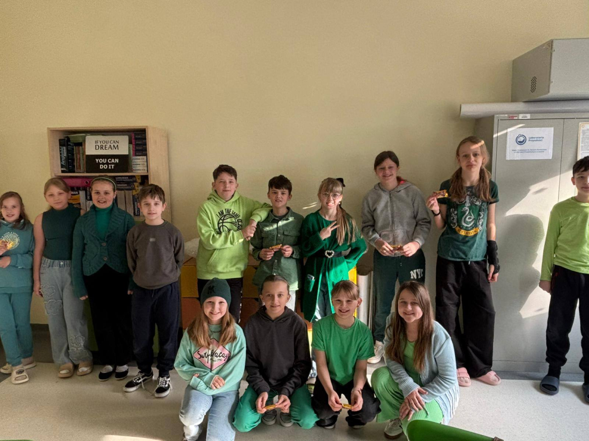 W naszej szkole obchodziliśmy Dzień Świętego Patryka w wyjątkowo radosnej i barwnej atmosferze. Już od samego rana korytarze wypełniły się kolorem zielonym – uczniowie przyszli ubrani na zielono, nawiązując do tradycji irlandzkich. Na dzieci czekała słodka niespodzianka, która wywołała wiele uśmiechów.