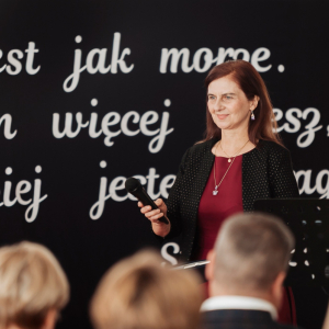 Słowa uznania i życzenia skierowała również Pani Alicja Pietrzak- Kierownik Centrum Usług Wspólnych, dziękując za współpracę, otwartość i wspólne działania na rzecz dobra uczniów.