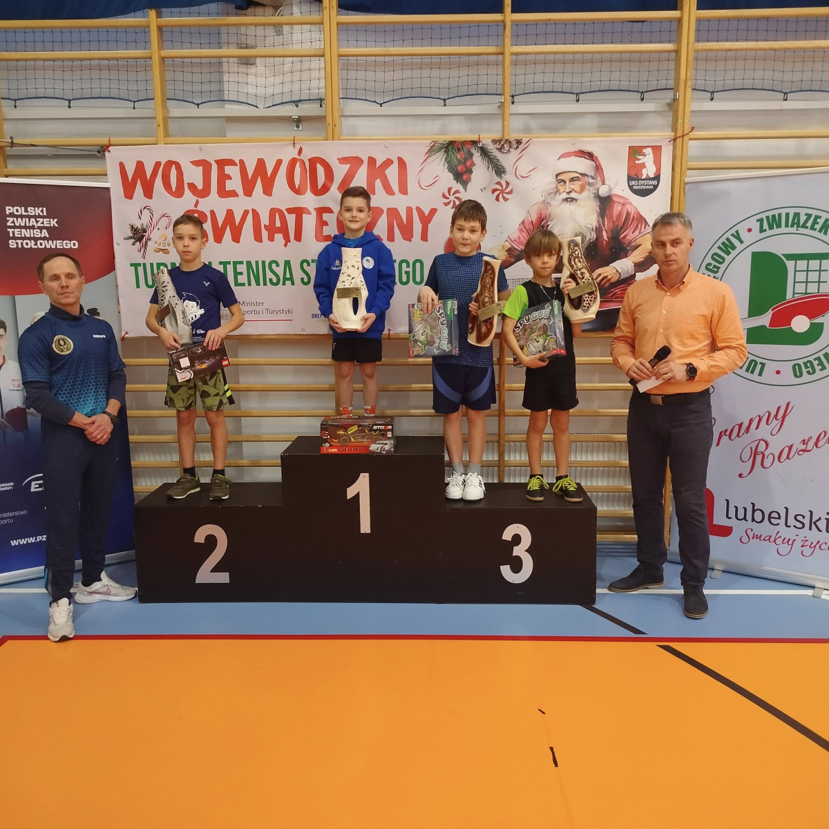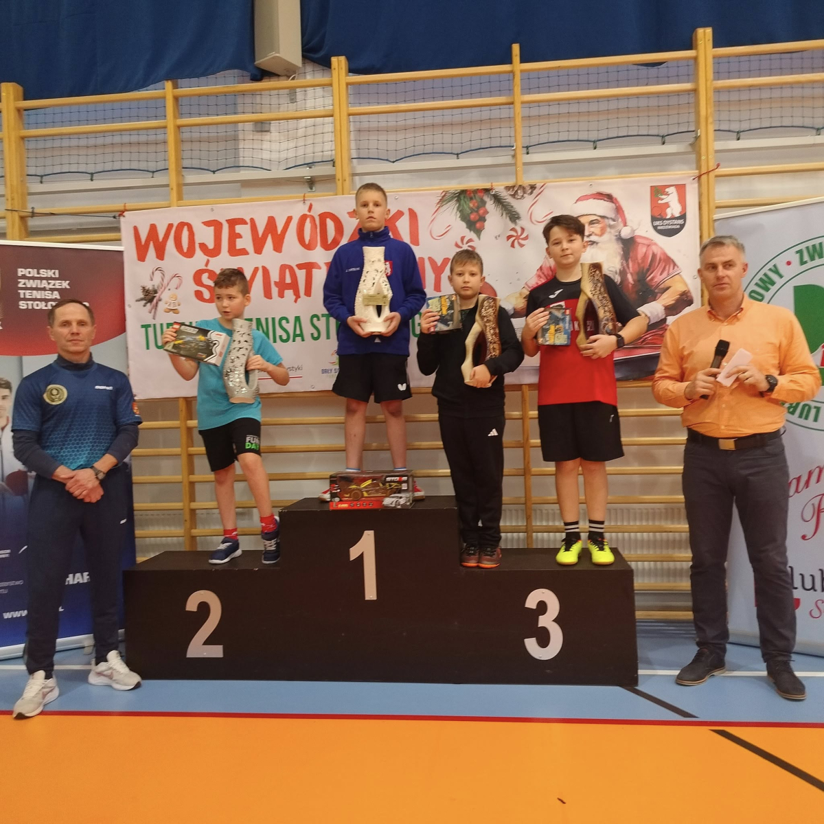 Sobota 06.12.2025. Wola Skromowska. IX Mikołajkowy Wojewódzki Turniej skrzatów i żaków edycja 2025 w tenisie stołowym.