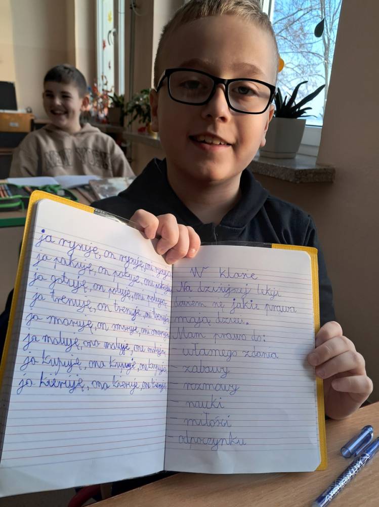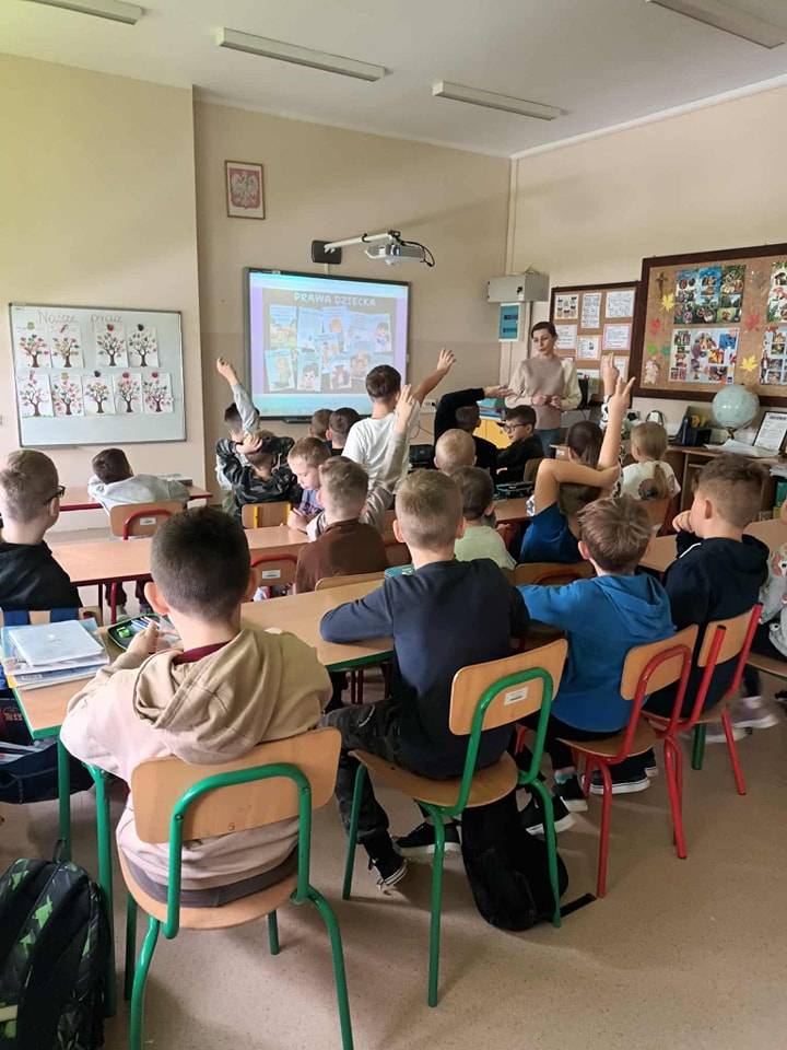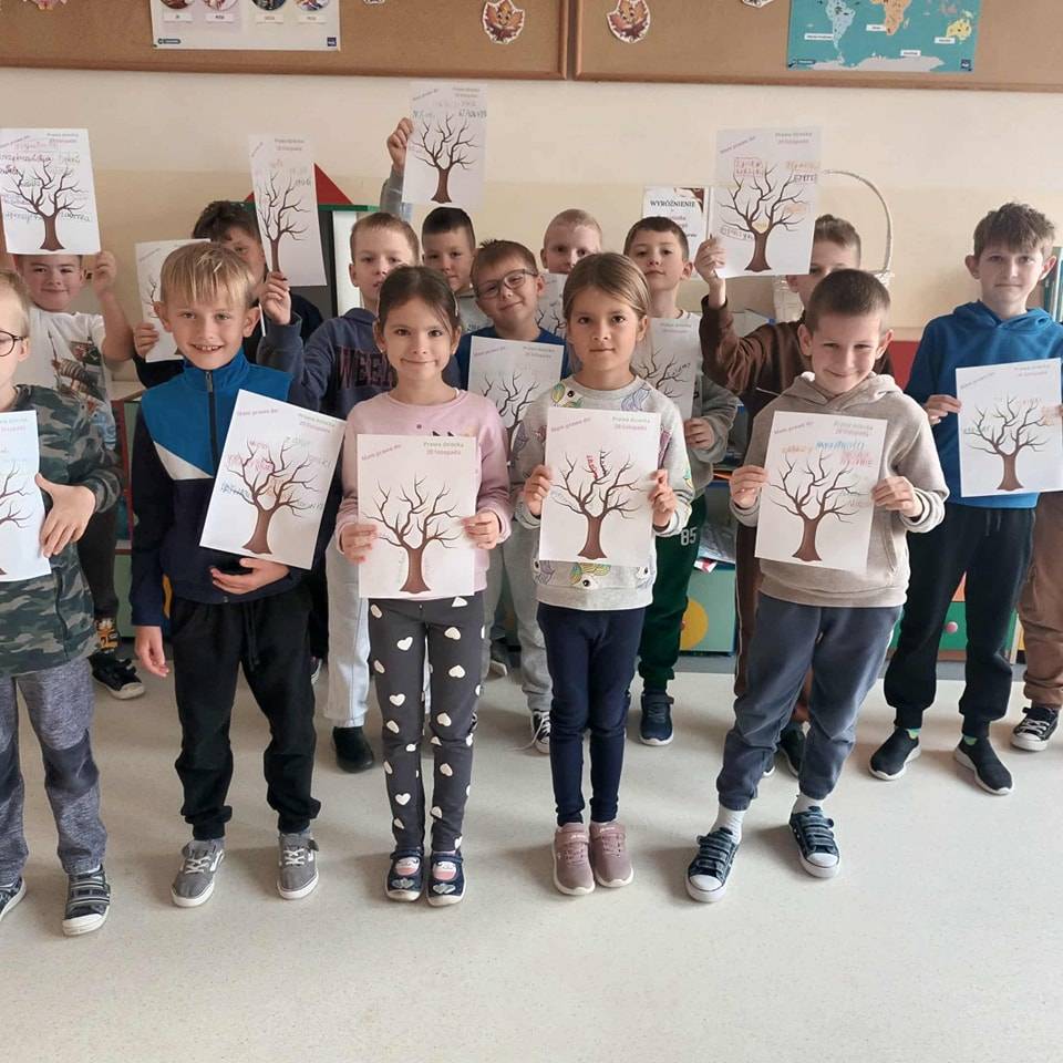 20 listopada uczniowie klas II i III wzięli udział w zajęciach z okazji Międzynarodowego Dnia Praw Dziecka. Podczas spotkania, na podstawie prezentacji multimedialnej, poznali swoje prawa oraz obowiązki. Następnie wykonali krótką notatkę do zeszytu i stworzyli prace plastyczne pod tytułem „Drzewko moich praw”. Zajęcia przebiegły w miłej atmosferze i poszerzyły wiedzę uczniów na temat ich praw w codziennym życiu.