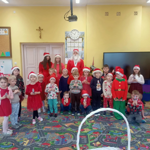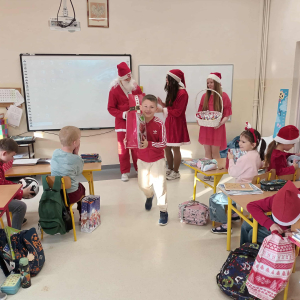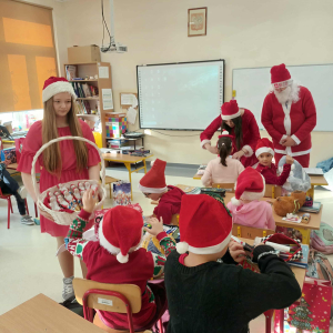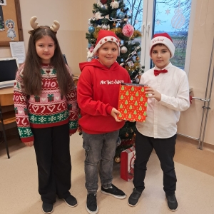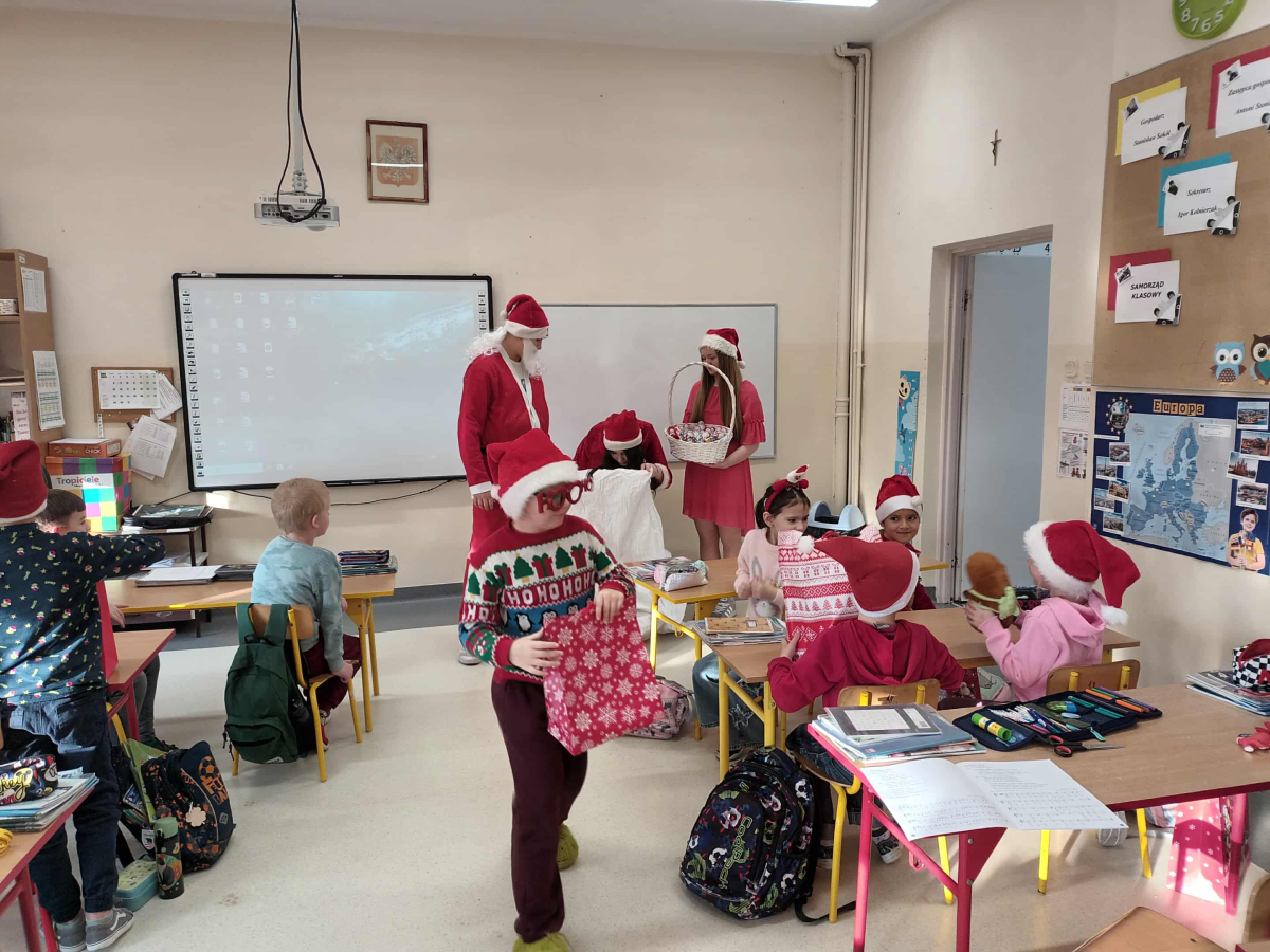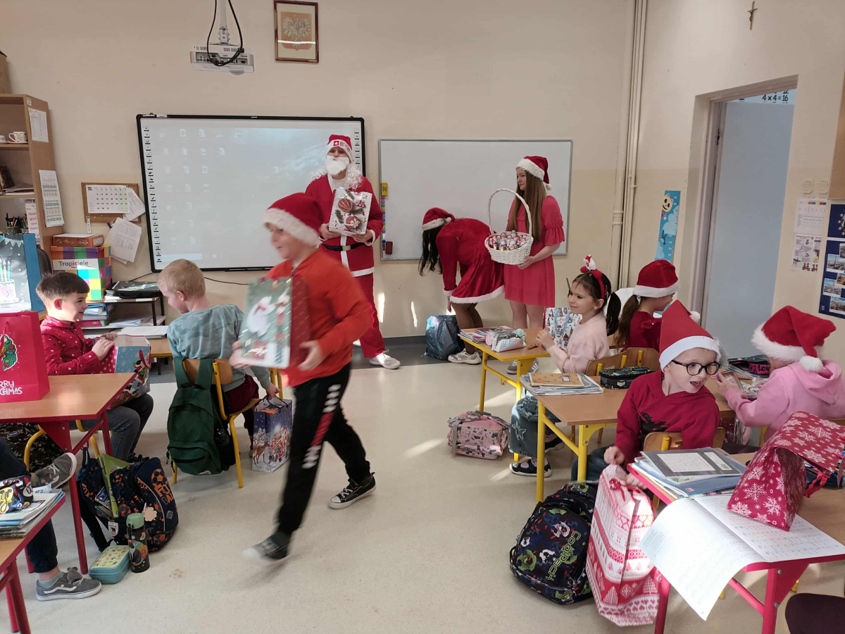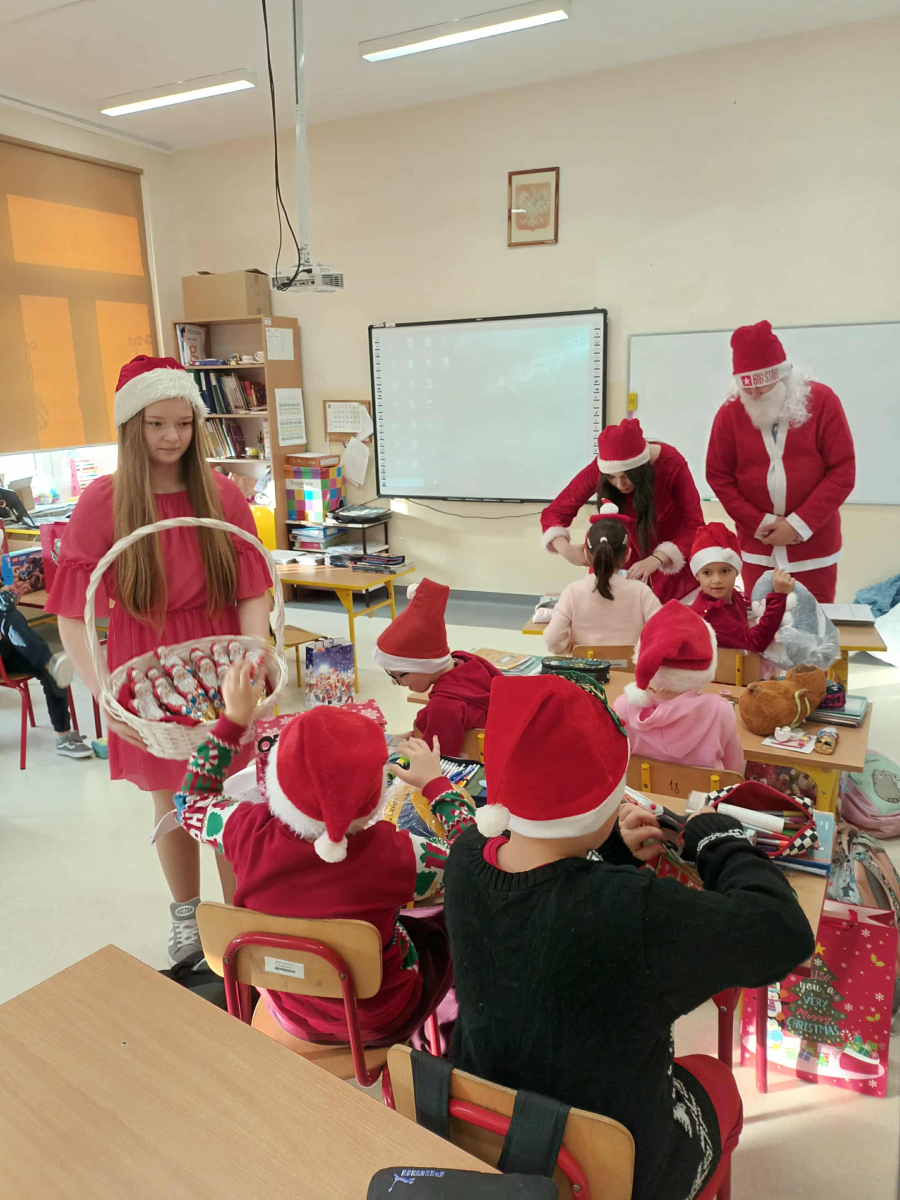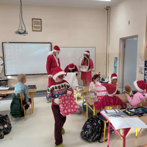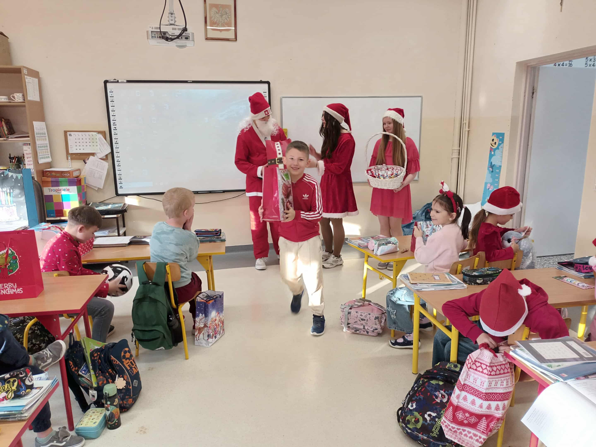 6 grudnia po korytarzach naszej szkoły krążył podejrzany osobnik w czerwonym kubraku… Okazało się, że to Święty Mikołaj. Mikołaj w towarzystwie Elfów odwiedzał klasy, rozdawał uczniom prezenty, uśmiechy i… bardzo uważnie obserwował, kto w tym roku był grzeczny. Na korytarzach i w klasach królował kolor czerwony, mikołajkowe czapki, czerwone sweterki, zimowe dekoracje wprowadzały wszystkich w świąteczny nastrój. Dziękujemy Mikołajowi, Elfom i Wszystkim, którzy przyczynili się do organizacji tego wyjątkowego dnia. Drogi Mikołaju, wpadnij do nas za rok!