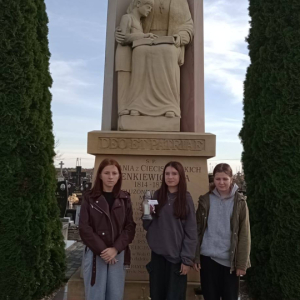 Szkoła Podstawowa w Goździe wzięła udział w ogólnopolskiej akcji SzkołaPamięta, której celem jest pielęgnowanie pamięci o bohaterach i ważnych wydarzeniach z historii naszej ojczyzny. W ramach przedsięwzięcia odwiedziliśmy cmentarz parafialny w Okrzei. Uczennice oddały hołd matce Henryka Sienkiewicza – Stefanii z Cieciszowskich Sienkiewiczowej, dziesięciu nieznanym żołnierzom poległym w 1920 roku, a także nauczycielom z Gęsiej Wólki zamordowanym przez okupanta niemieckiego 31 marca 1944 roku. To symboliczny gest pamięci i szacunku wobec tych, którzy zapisali się na kartach historii naszego regionu i kraju.