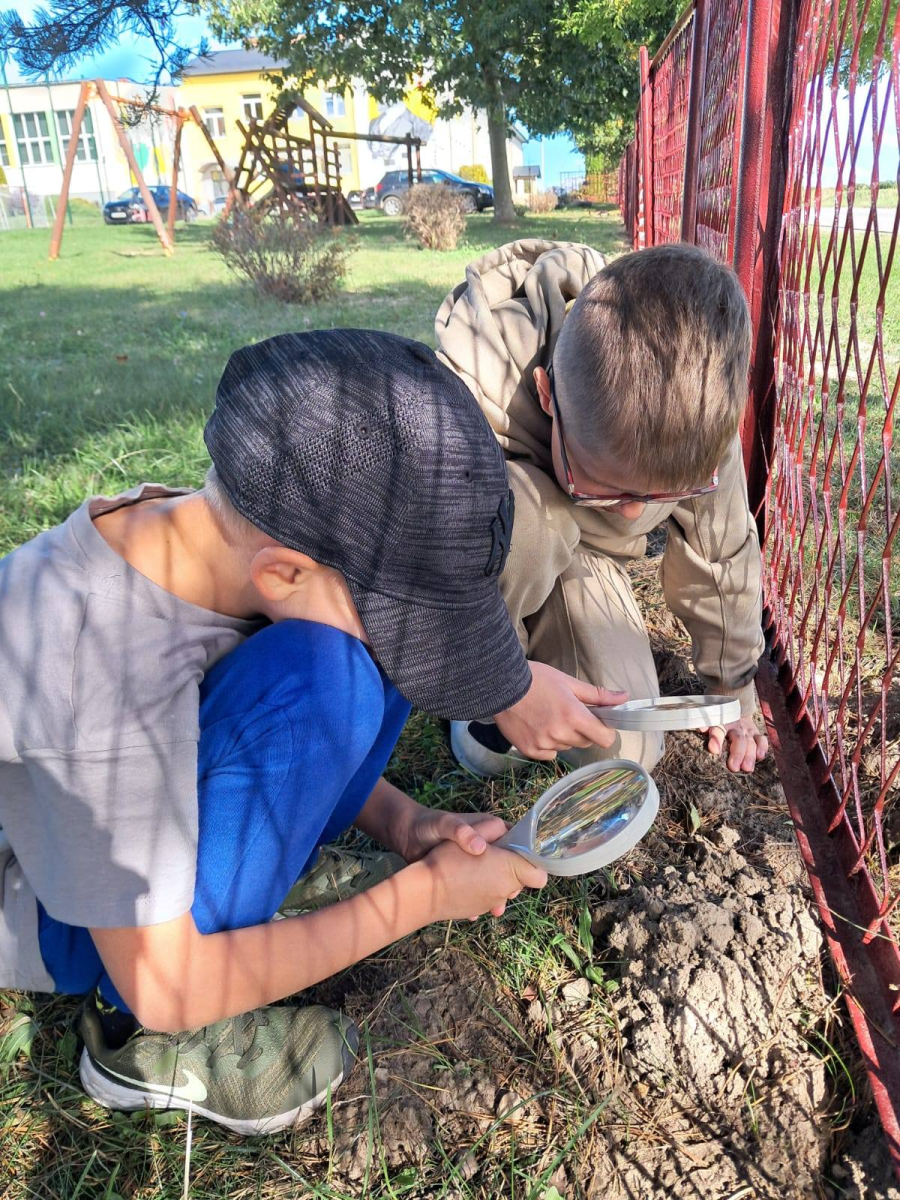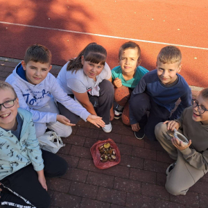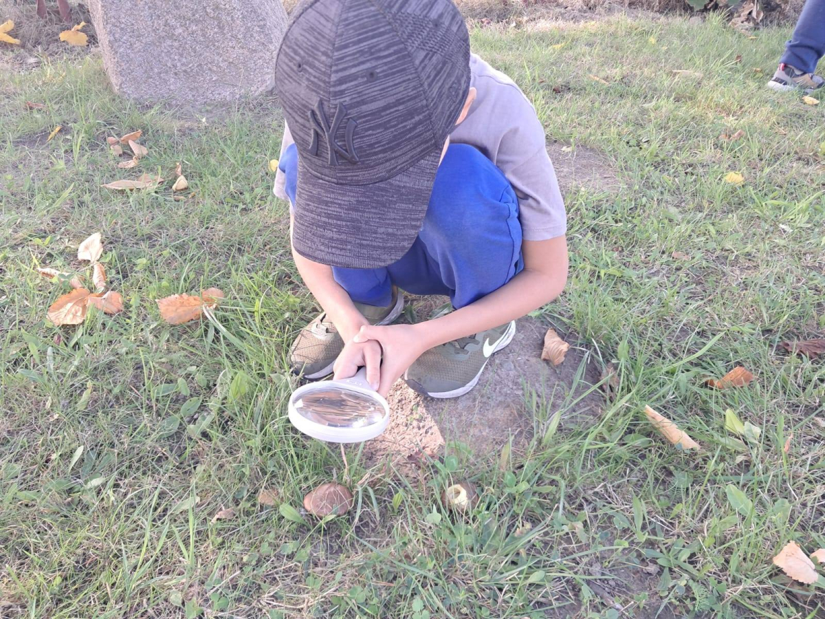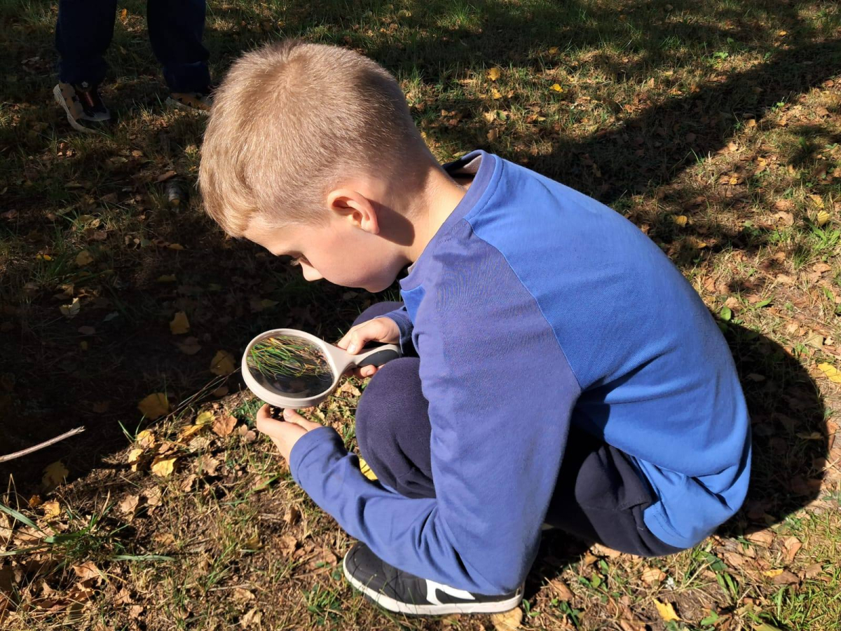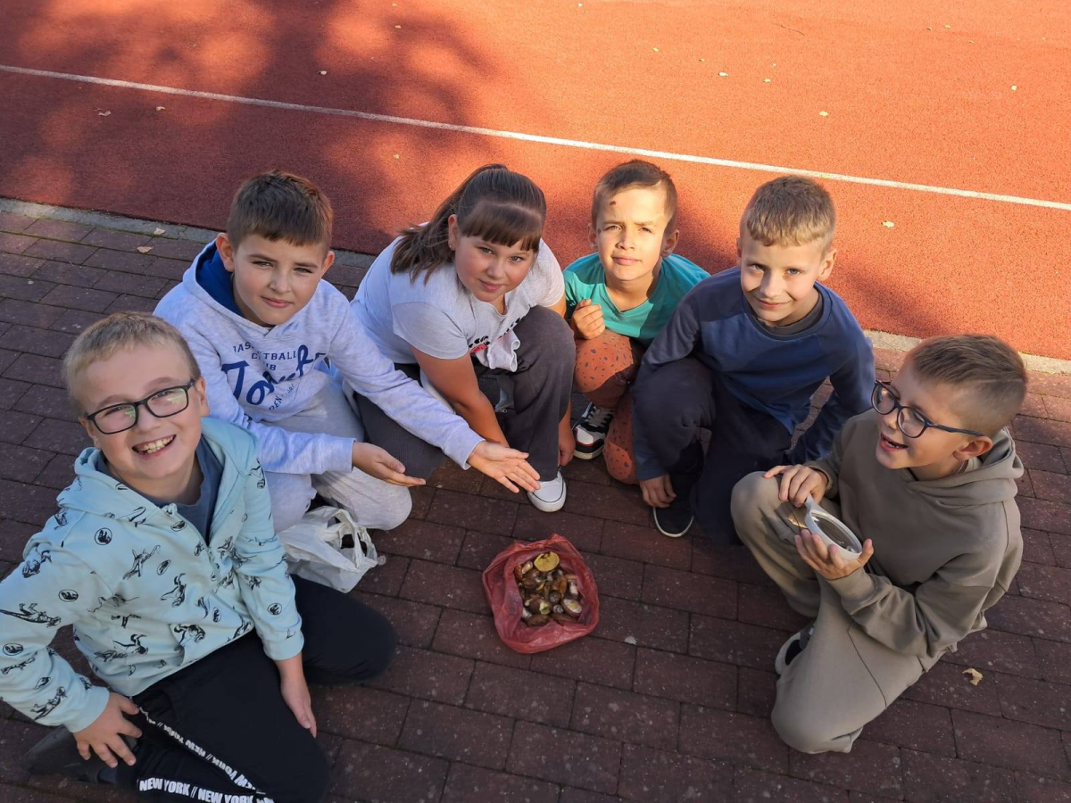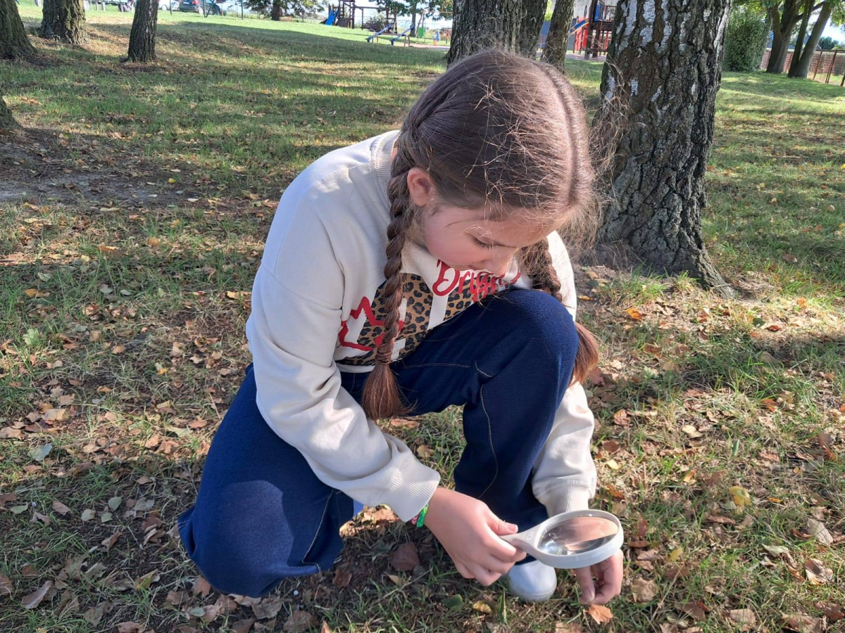 W zielonym zakątku w pobliżu szkoły uczniowie klasy III zbierali maślaki i uczyli się rozpoznawać różne gatunki grzybów. Z pomocą lup obserwowali „co piszczy w trawie”. Przyglądali się darom jesieni – kolorowym liściom, szyszkom i żołędziom, podziwiając bogactwo barw i kształtów tej pory roku. Zajęcia dostarczyły im wielu wrażeń i pozwoliły lepiej zrozumieć zmiany zachodzące w przyrodzie.