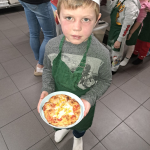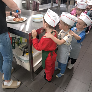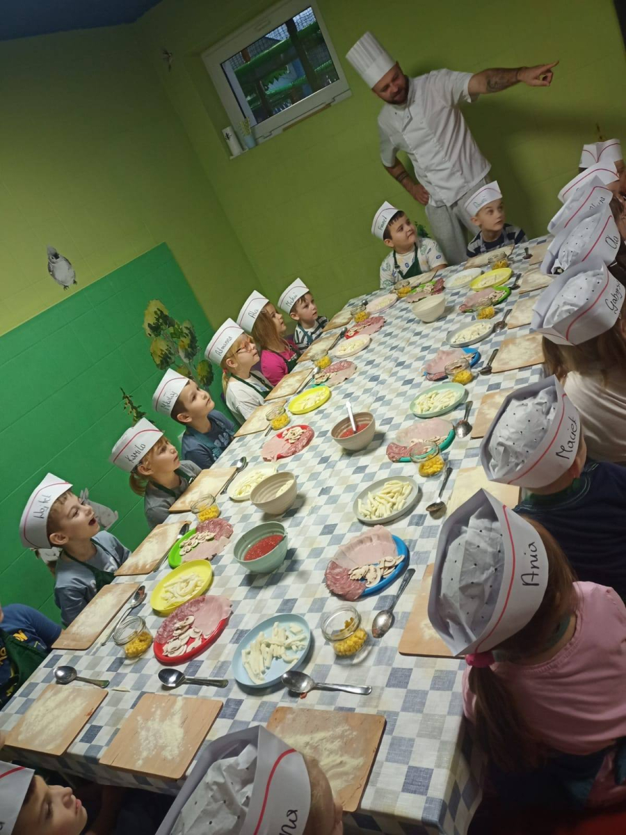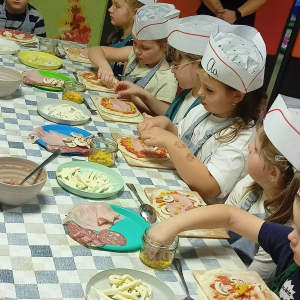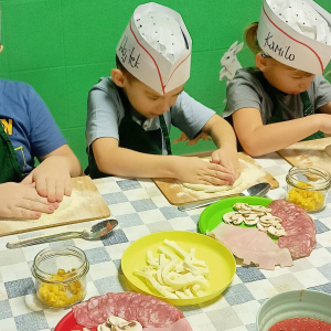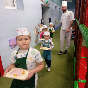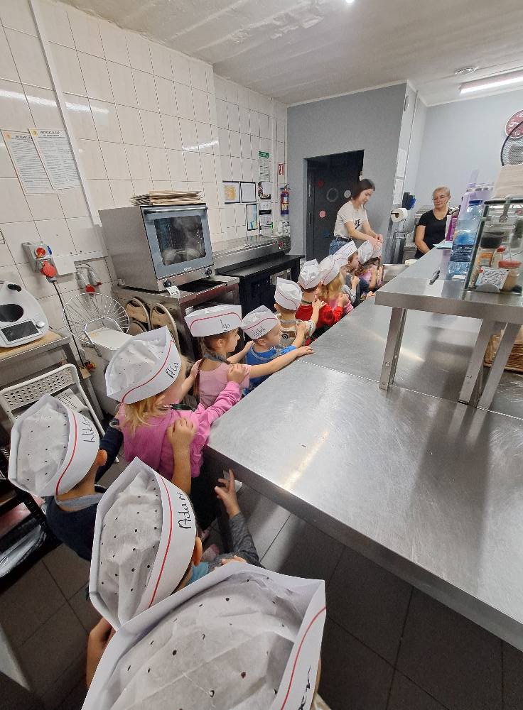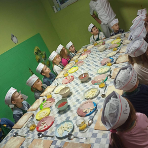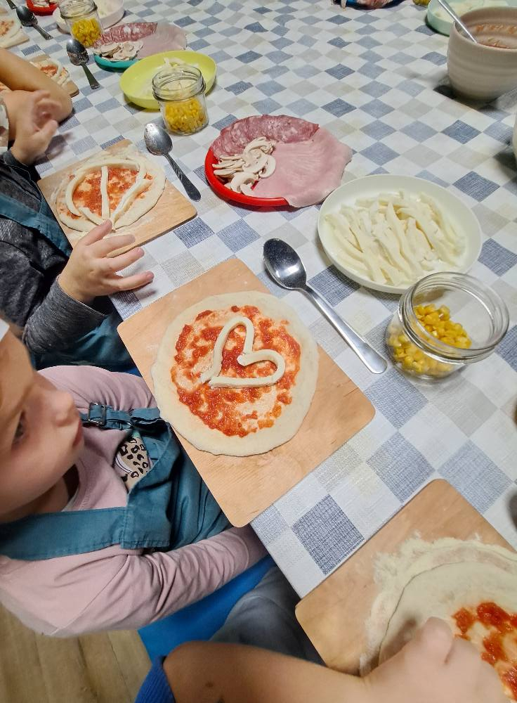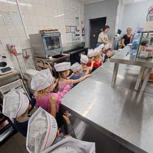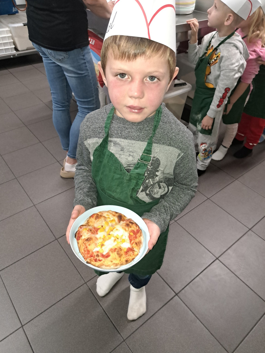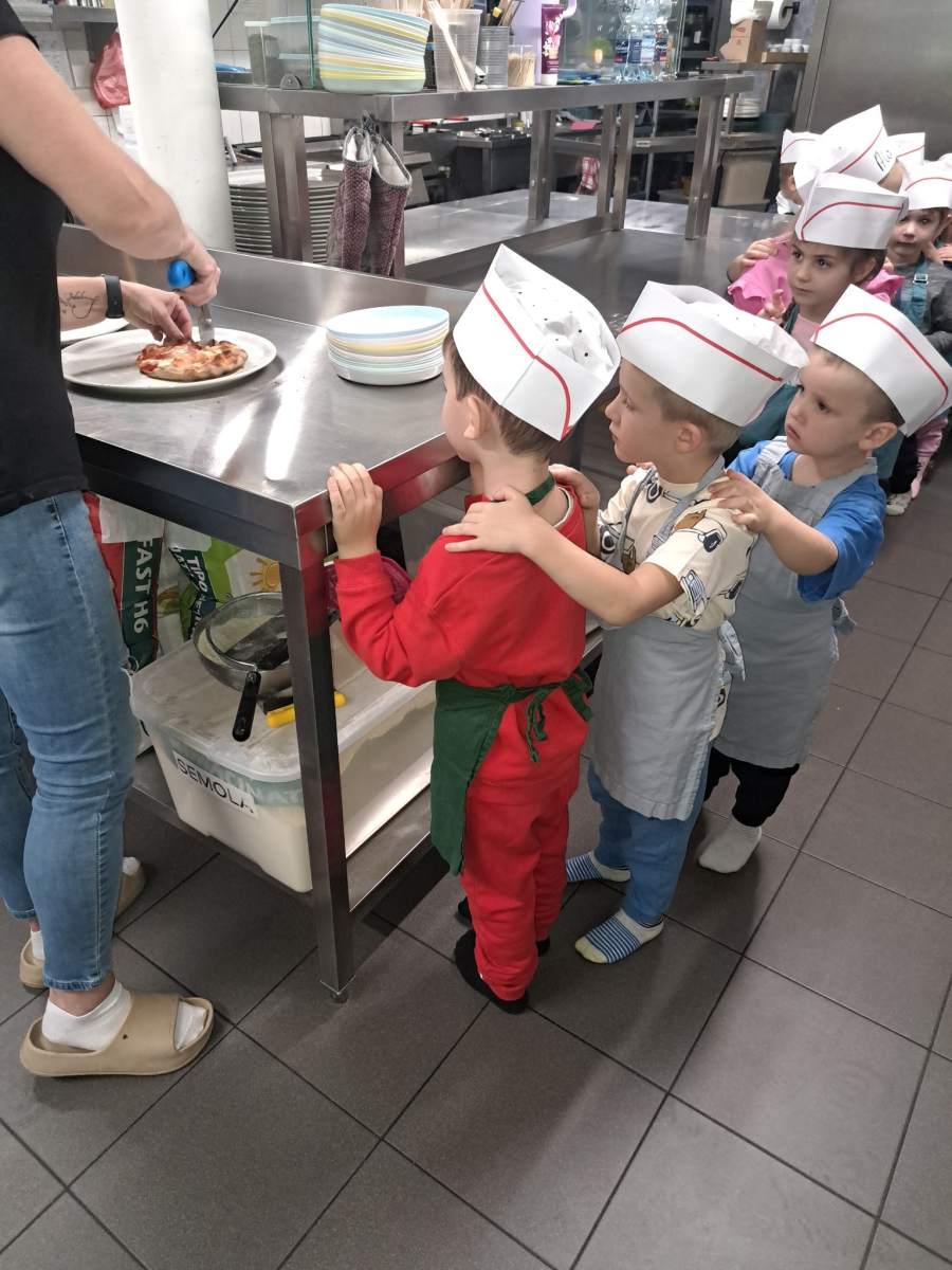 Dziś dzieci z Punktu i Oddziału Przedszkolnego wybrały się na pyszną i pełną wrażeń wycieczkę do Manufaktury Smaku i Zabawy w Nowym Goniwilku. Oprócz wspaniałej zabawy przedszkolaki wzięły udział w warsztatach robienia pizzy. Każde dziecko samodzielnie przygotowało swoją pizzę, wybierając ulubione składniki, a następnie obserwowało, jak wypieka się ona w prawdziwym piecu do pizzy. W czapce kucharskiej i fartuszku każde dziecko miało okazję przez chwilę poczuć się jak prawdziwy kucharz, z dumą tworząc swoje własne kulinarne dzieło! To był dzień pełen uśmiechów, nowych doświadczeń i apetycznych wrażeń. Przedszkolaki wróciły do przedszkola szczęśliwe i bogatsze o kolejne, smakowite wspomnienia.Dziś dzieci z Punktu i Oddziału Przedszkolnego wybrały się na pyszną i pełną wrażeń wycieczkę do Manufaktury Smaku i Zabawy w Nowym Goniwilku. Oprócz wspaniałej zabawy przedszkolaki wzięły udział w warsztatach robienia pizzy. Każde dziecko samodzielnie przygotowało swoją pizzę, wybierając ulubione składniki, a następnie obserwowało, jak wypieka się ona w prawdziwym piecu do pizzy. W czapce kucharskiej i fartuszku każde dziecko miało okazję przez chwilę poczuć się jak prawdziwy kucharz, z dumą tworząc swoje własne kulinarne dzieło! To był dzień pełen uśmiechów, nowych doświadczeń i apetycznych wrażeń. Przedszkolaki wróciły do przedszkola szczęśliwe i bogatsze o kolejne, smakowite wspomnienia.