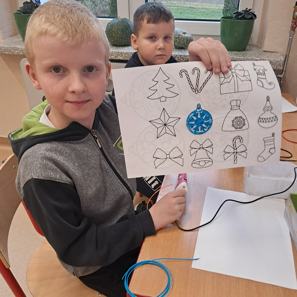 Podczas zajęć specjalistycznych uczniowie pracowali z długopisami 3D, tworząc przestrzenne figurki świętego Mikołaja. Natomiast w trakcie szkolnych Jasełek wykorzystano laptop oraz aparat fotograficzny, dzięki którym możliwe było udokumentowanie tego wyjątkowego wydarzenia.
