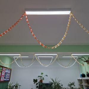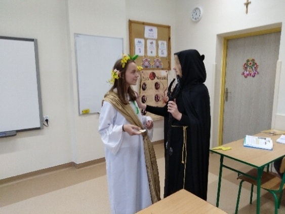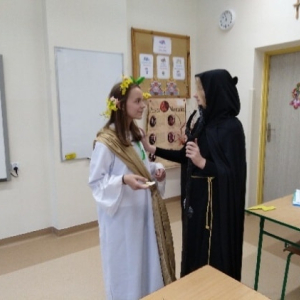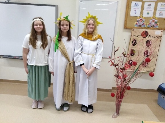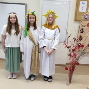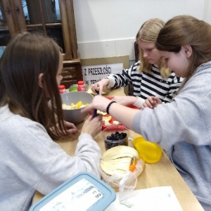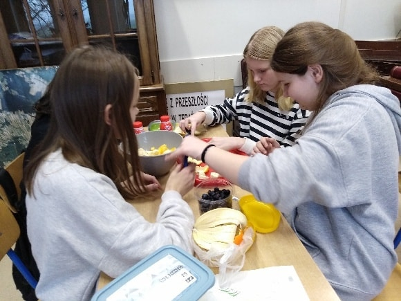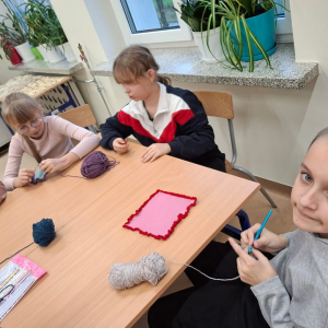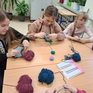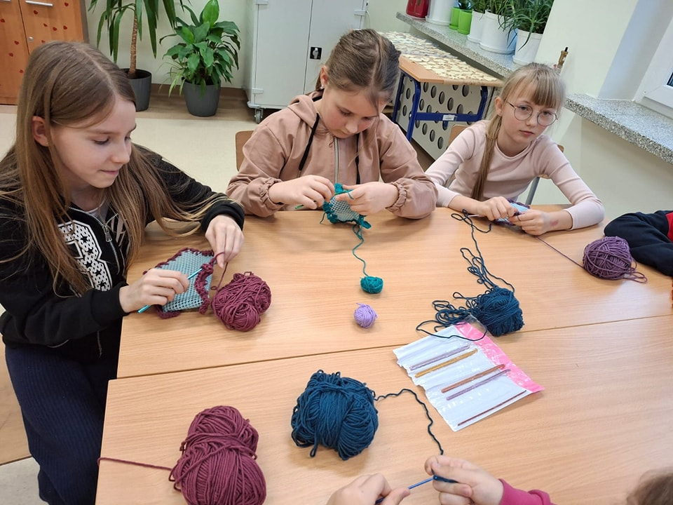 Uczniowie klasy piątej pracowali bardzo wszechstronnie – z wykorzystaniem sprzętu AGD przygotowali zdrowe, owocowe sałatki, a przy pomocy akcesoriów krawieckich wykonali stroje do spektaklu „Demeter i Kora”. Klasa szósta skorzystała z włóczki i szydełek dostępnych w kąciku dziewiarskim, tworząc pierwsze robótki szydełkowe. Uczniowie klasy siódmej wykonali długi, barwny łańcuch na choinkę, wykorzystując materiały papiernicze.