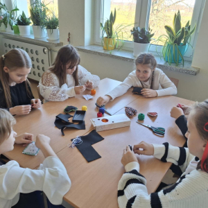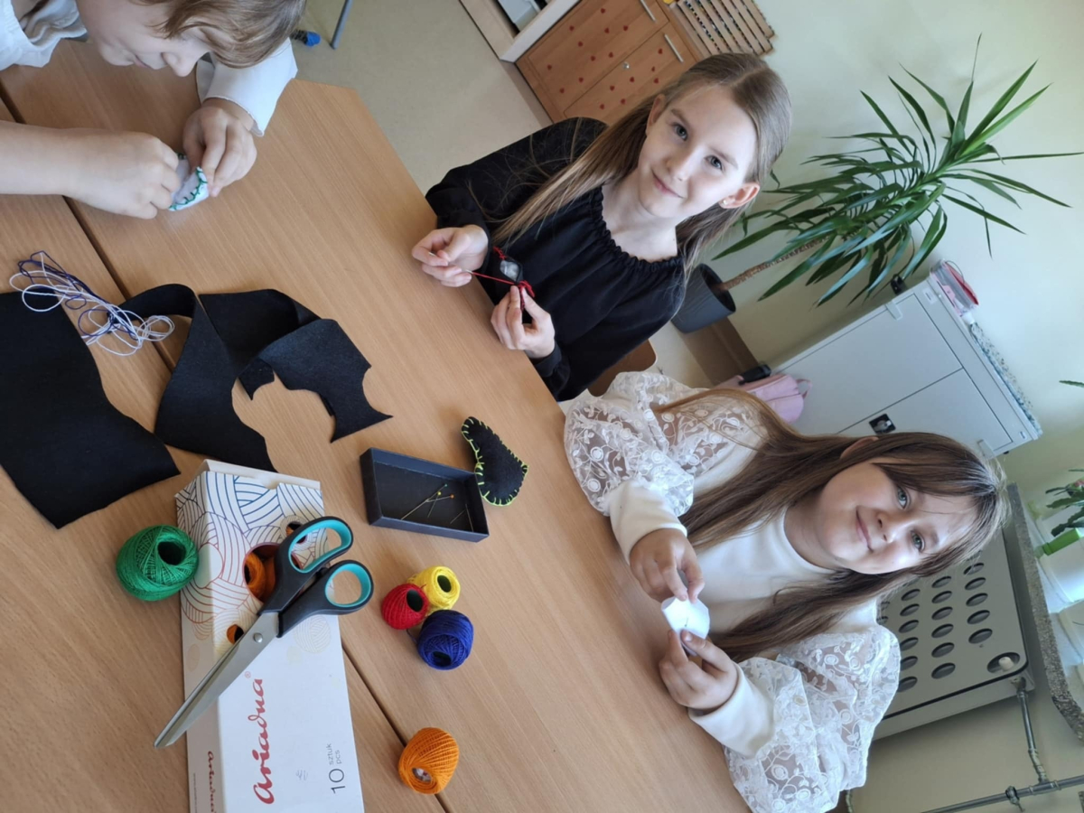Na zajęciach artystycznych uczennice klasy czwartej przygotowały dziergane poduszki na igły, korzystając z zasobów kącika dziewiarskiego. Powstałe prace zachwycały dokładnością oraz kreatywnym podejściem.