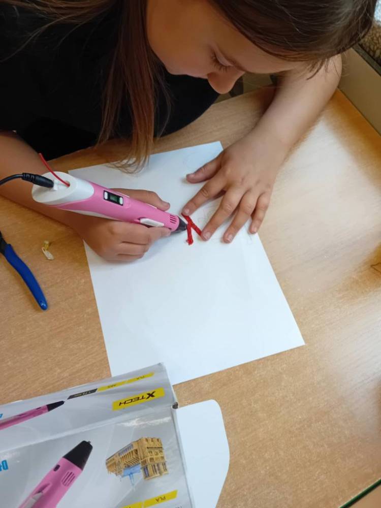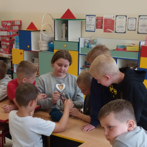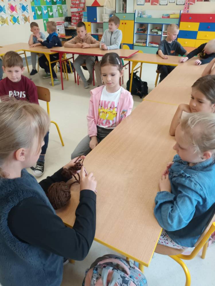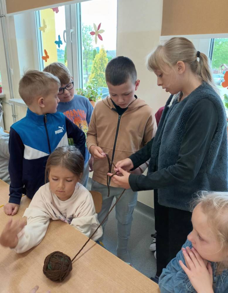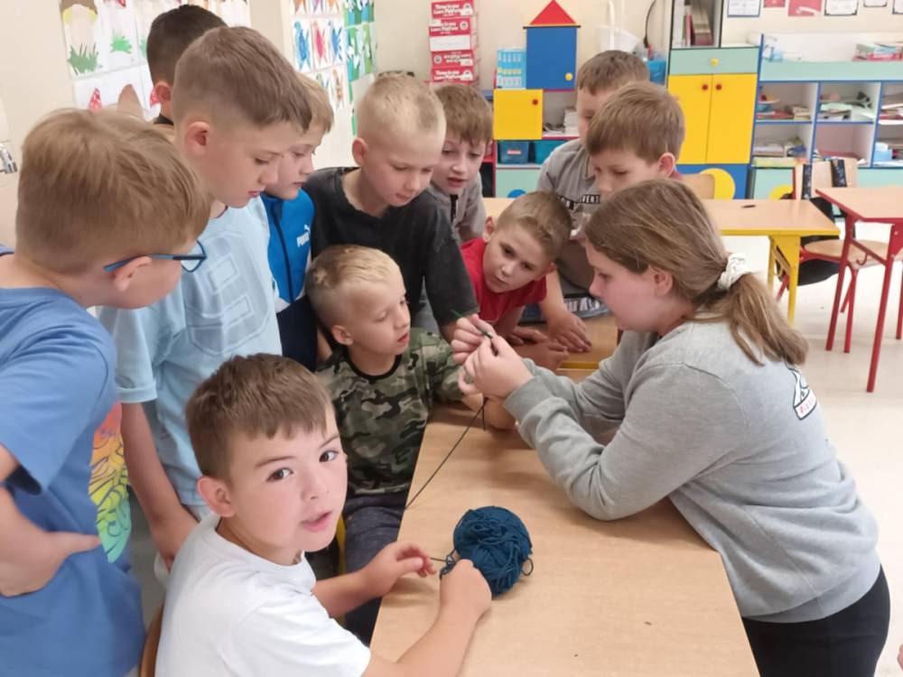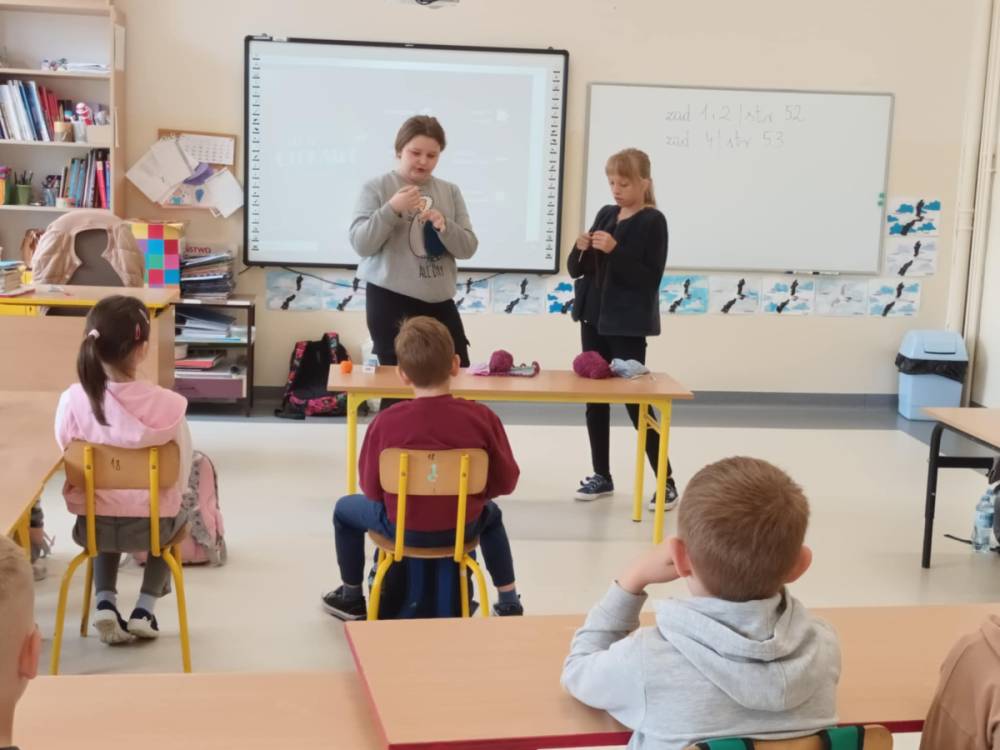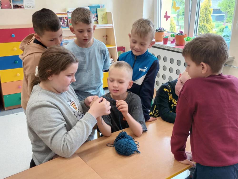W maju uczniowie naszej szkoły z powodzeniem wykorzystywali sprzęt z programu Laboratoria Przyszłości. Aparat fotograficzny, laptop i sprzęt nagłaśniający zostały użyte do organizacji uroczystości z okazji Dnia Patrona oraz Dnia Mamy i Taty, natomiast na zdjęciach zostały uwiecznione również wycieczki: klasy 8 do Zamościa i na Roztocze, Rajd Rowerowy śladami Henryka Sienkiewicza, biwak kl. 4 i 6 oraz zajęcia biblioteczne w GOK w Kłoczewie. Nożyczki z kącika krawieckiego, nici oraz klej na gorąco posłużyły do przygotowania dekoracji na wyżej wymienione uroczystości oraz do wykonania upominków dla rodziców w Przedszkolach oraz w klasach 1-3: serduszek, bukietów oraz ozdobnych stożków z papierową różą. Na zajęciach specjalistycznych uczniowie ćwiczyli umiejętność skupienia uwagi i precyzji wykonania zadania, wykorzystując pomoce z programu Laboratoria Przyszłości. W klasie 1 odbyła się lekcja szydełkowania i robienia na drutach, gdzie uczniom swoje umiejętności zaprezentowały uczennice: Maja Paczek i Liliana Lasek. Narzędzia z kącika dziewiarskiego wykorzystali także starsi uczniowie do przygotowania ozdobnych serwetek dla swoich rodziców. Sztalugi, płótna oraz zestawy malarskie posłużyły natomiast uczennicom kl. 6, które za zajęciach pt. „W pracowni malarskiej” namalowały piękne obrazy na płótnie według własnej inwencji twórczej.