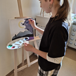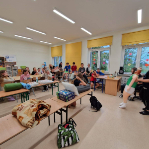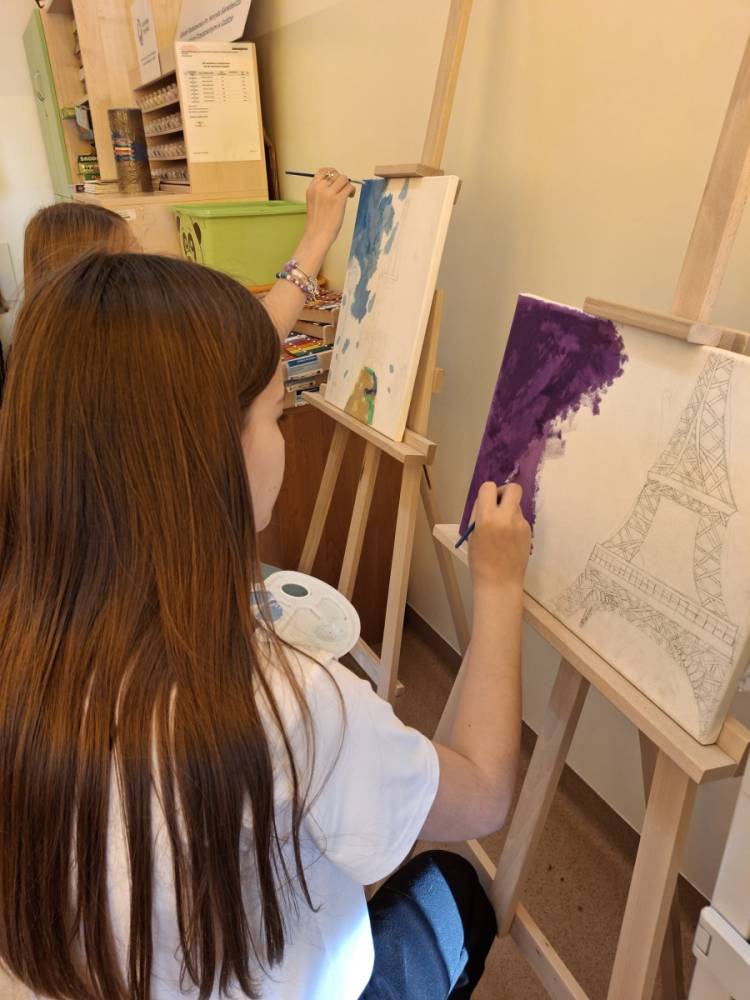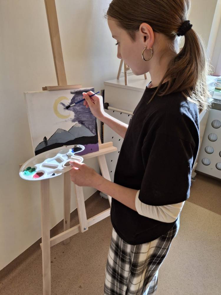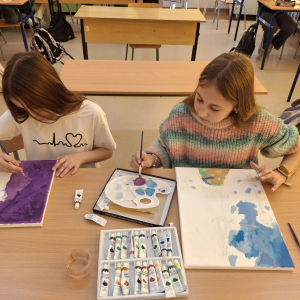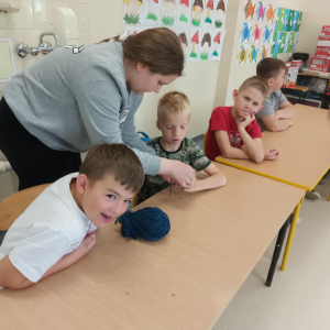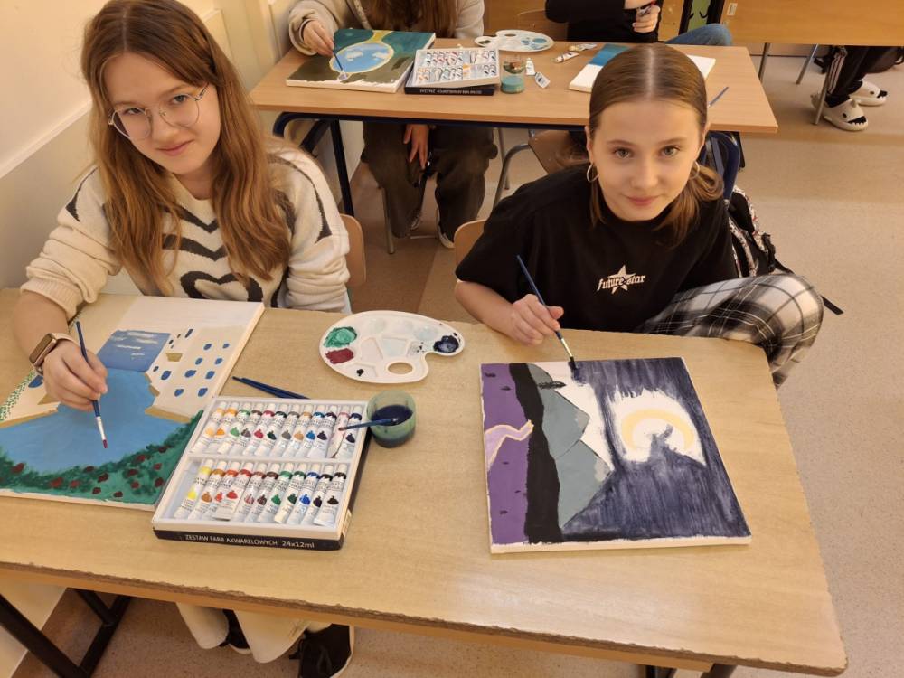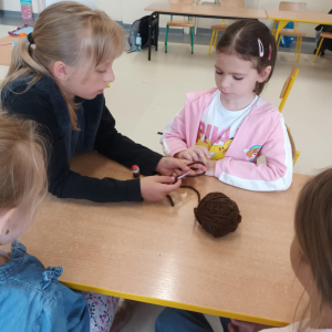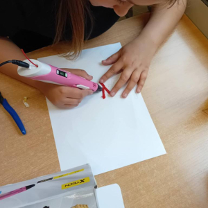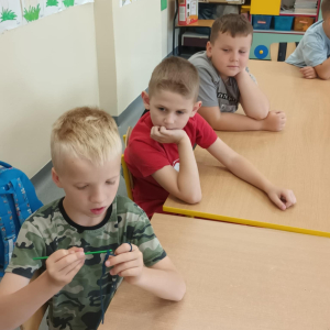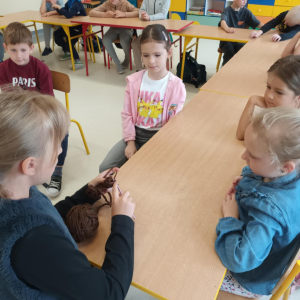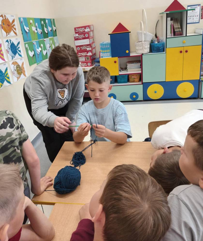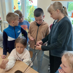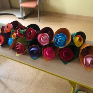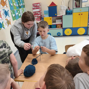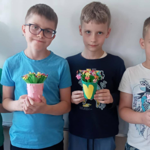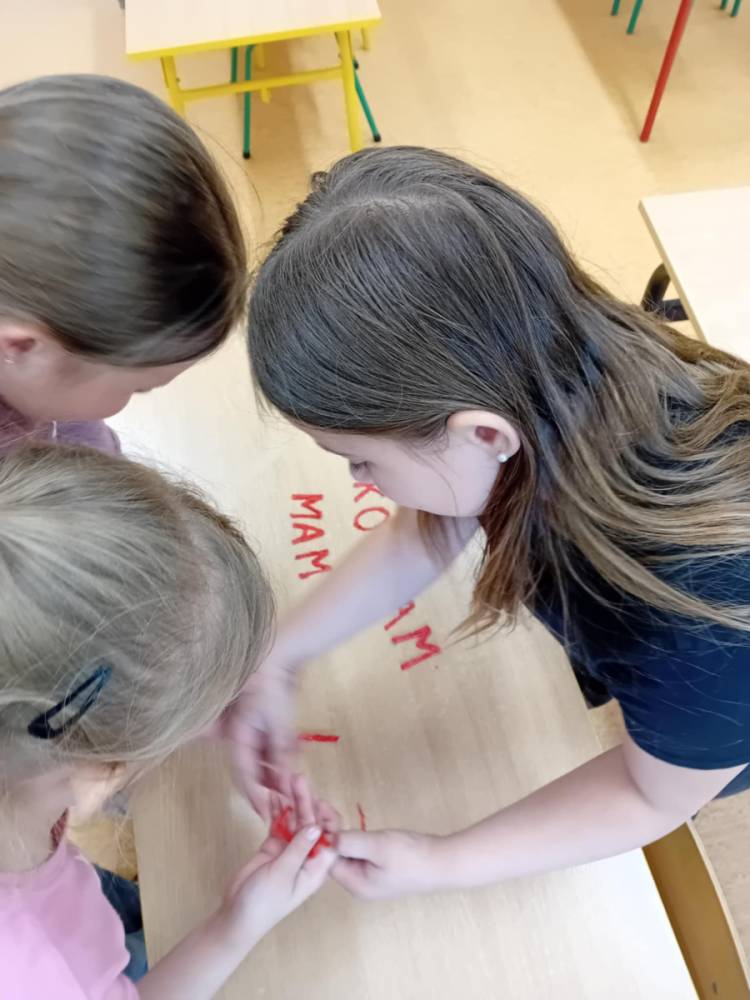 W maju uczniowie naszej szkoły z powodzeniem wykorzystywali sprzęt z programu Laboratoria Przyszłości. Aparat fotograficzny, laptop i sprzęt nagłaśniający zostały użyte do organizacji uroczystości z okazji Dnia Patrona oraz Dnia Mamy i Taty, natomiast na zdjęciach zostały uwiecznione również wycieczki: klasy 8 do Zamościa i na Roztocze, Rajd Rowerowy śladami Henryka Sienkiewicza, biwak kl. 4 i 6 oraz zajęcia biblioteczne w GOK w Kłoczewie. Nożyczki z kącika krawieckiego, nici oraz klej na gorąco posłużyły do przygotowania dekoracji na wyżej wymienione uroczystości oraz do wykonania upominków dla rodziców w Przedszkolach oraz w klasach 1-3: serduszek, bukietów oraz ozdobnych stożków z papierową różą. Na zajęciach specjalistycznych uczniowie ćwiczyli umiejętność skupienia uwagi i precyzji wykonania zadania, wykorzystując pomoce z programu Laboratoria Przyszłości. W klasie 1 odbyła się lekcja szydełkowania i robienia na drutach, gdzie uczniom swoje umiejętności zaprezentowały uczennice: Maja Paczek i Liliana Lasek. Narzędzia z kącika dziewiarskiego wykorzystali także starsi uczniowie do przygotowania ozdobnych serwetek dla swoich rodziców. Sztalugi, płótna oraz zestawy malarskie posłużyły natomiast uczennicom kl. 6, które za zajęciach pt. „W pracowni malarskiej” namalowały piękne obrazy na płótnie według własnej inwencji twórczej.